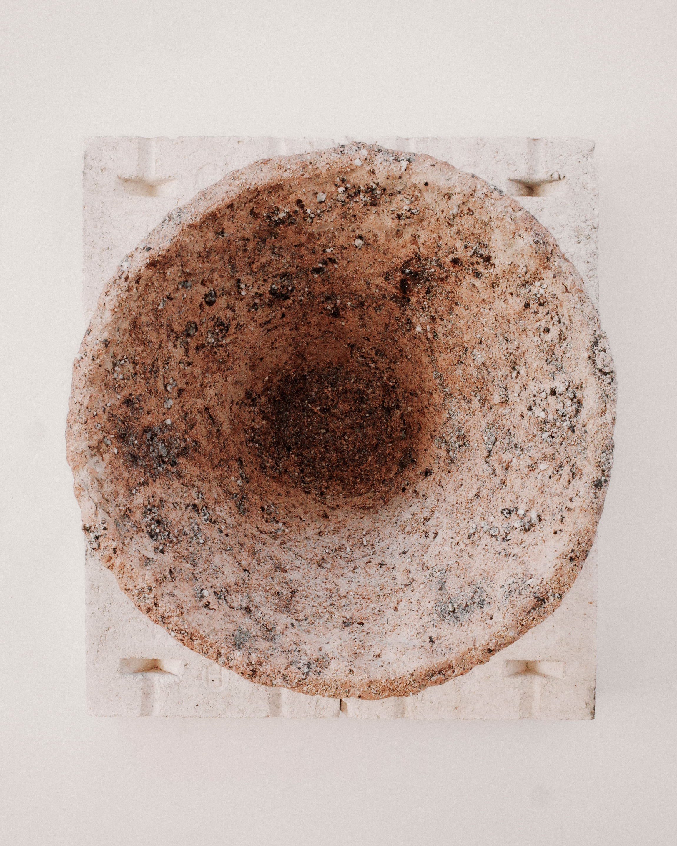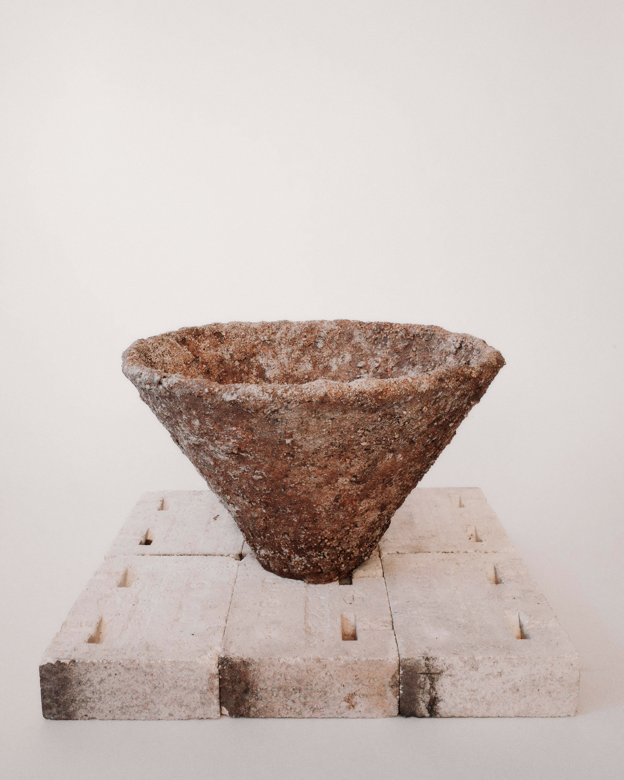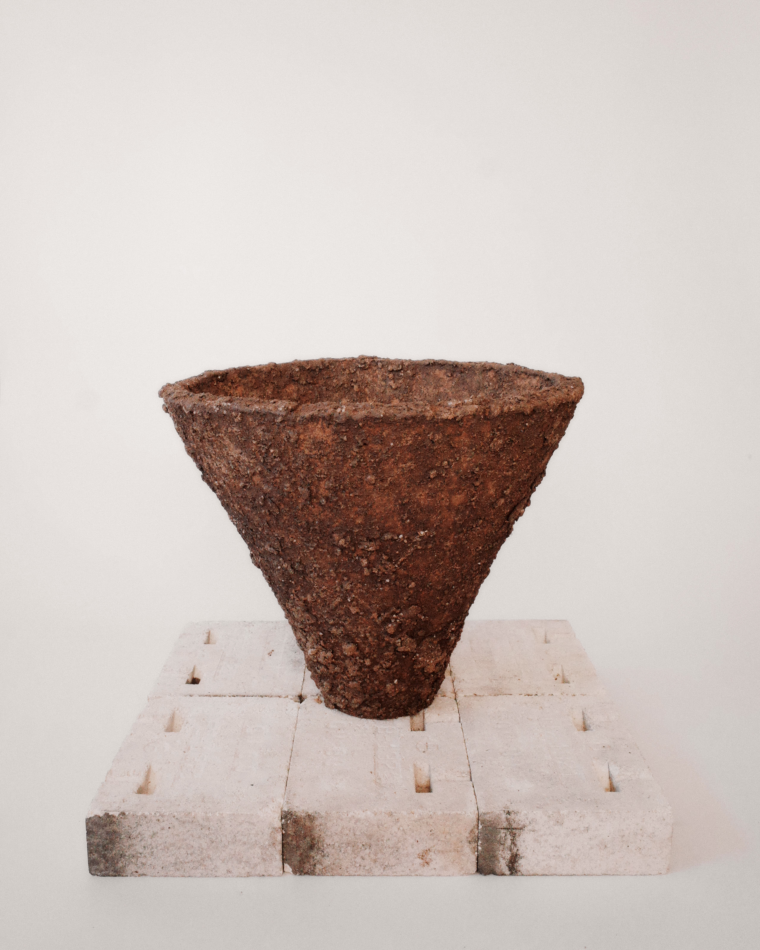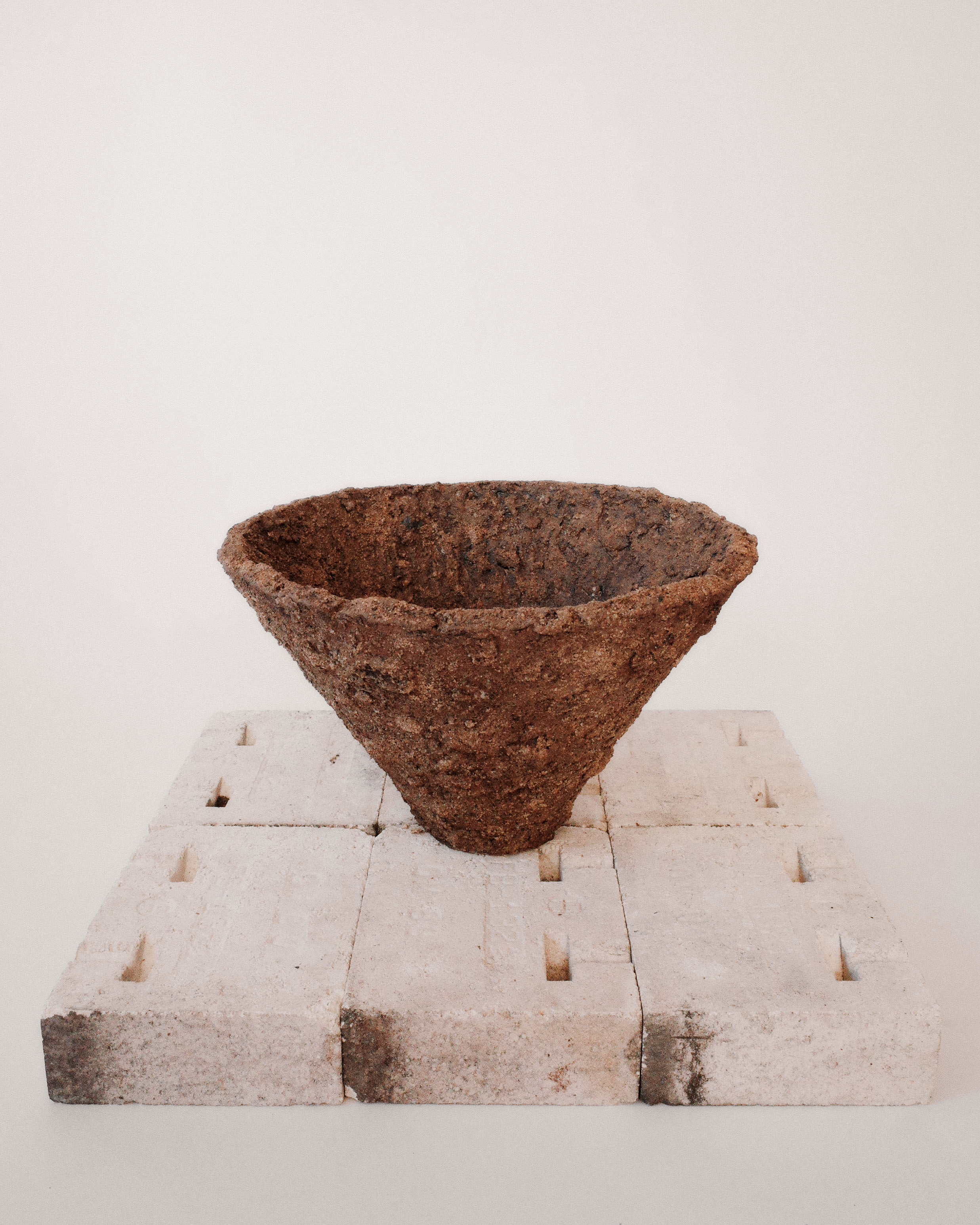 The pieces are made with California clay and added materials such as feldspar, iron, and quartz. These natural materials are pulled from the mountains outside of Los Angeles. They are worked into the clay body as well as mixed with various layers of slip on the surface. The roughed surfaced gives the work a natural aesthetic, almost as if they were pulled directly from the earth.