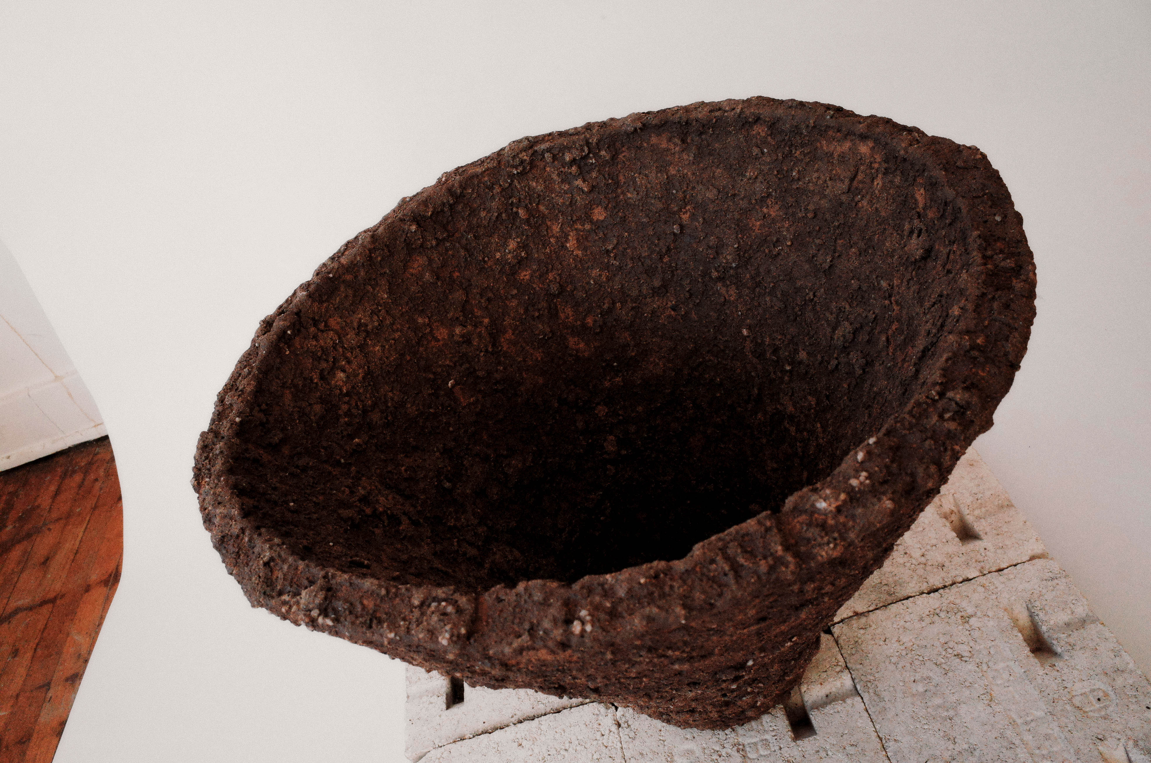 These ceramic forms illicit movement yet are inherently still. The conical shape creates motion by simultaneously pulling you into the form while looking at it from above and pushing your eye out and upwards when viewed straight on. Each opposing force working seamlessly together creates a tension and anxiety. However, this is calmed and soothed with the stillness of the final piece, keeping you frozen between two actions.